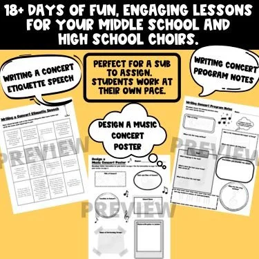 My Products Categories: Select a Category Music Worksheets Music Bulletin Board Awards Bell Ringer Worksheets Music Games Halloween Thanksgiving Winter/Christmas Music Lessons End of the Year Choir Sub Plans Beginning of School Store Music Worksheets | Music Bulletin Board | Awards | Bell Ringer Worksheets | Music Games | Halloween | Thanksgiving | Winter/Christmas | Music Lessons | End of the Year | Choir Sub Plans | Beginning of School | Choir Game & Music Activity Bundle for Middle School & High School Music Classes $32.55 Add To Cart Added! Would You Rather Game: Choir Edition - A Middle and High School Choirs Activity $3.00 Add To Cart Added! Singing and Drawing Game for Secondary Choirs! Works well for larger ensembles! $3.00 Add To Cart Added! Ultimate Halloween Activity Bundle for Choirs / Choir Lesson Plans $10.40 Add To Cart Added! Halloween Activities for Choirs: Quick & Easy Ideas for Engagement! Lesson Plans $3.00 Add To Cart Added! Halloween Singing Race Music Game for Middle School and High School Choirs $3.00 Add To Cart Added! Circle It Up Halloween Brain Break Icebreaker Game - Lesson Plan $2.00 Add To Cart Added! Fast Talker Game- Halloween Edition! No prep, fun game for large groups! $2.00 Add To Cart Added! Spooky Choir Music Bulletin Board Kit - Fun for October! $3.00 Add To Cart Added! Thanksgiving/November Would You Rather Game - no prep, fun for large ensembles $3.00 Add To Cart Added! Thanksgiving Brain Break Game / November - no prep, fun for large groups! $2.00 Add To Cart Added! Turkey Team Building Activities for the Music Classroom in November! $3.00 Add To Cart Added! Turkey Choir Music Bulletin Board Kit- Great for Fall Decor $3.00 Add To Cart Added! Turkey Music Games & Activities Bundle for Choir, Band, Orchestra $6.00 Add To Cart Added! Who Am I? Music Flashcards and 6 Games for Choir, Band, Orchestra Music Classes $3.00 Add To Cart Added! Find Your Rhythm! Flashcard Music Activity for your Choir, Band or Orchestra $2.00 Add To Cart Added! Song/Movie MASHUP Music Fun Activity! Choir Lesson Plan $2.00 Add To Cart Added! Solfege Melody Race Game - Part 2! A Musical Activity for your Choirs! $2.00 Add To Cart Added! Solfege Melody Race Game - A Musical Activity for Your Choir $2.00 Add To Cart Added! Rhythm Race Game PART 2 - A Fun Musical Activity for your Music Classes $2.00 Add To Cart Added! Rhythm Race Game - A Musical Team Building Activity for your Music Class $2.00 Add To Cart Added! Fast Talker Music Game - Brain Break Game/Ice Breaker for Ensembles $2.00 Add To Cart Added! Sing a Song That... Music Singing Game - A Fun Brain Break for Music Classes $3.50 Add To Cart Added! Band Awards BUNDLE - 85 Fun Editable Award Certificates for Band $7.20 Add To Cart Added! Band Superlative Award Certificates - 40 Editable, Fun Music Awards! $4.00 Add To Cart Added! 45 Editable Band & Instrumentalist Award Certificates for End of the Year $5.00 Add To Cart Added! Choir Award BUNDLE - 60 Fun Editable Award Certificates for Chorus $6.00 Add To Cart Added! Editable Choir Awards - Perfect for End of the Year Celebrations! $3.00 Add To Cart Added! Choir Superlative Award Certificates - 40 Editable, Fun Singing Awards! $4.00 Add To Cart Added! 8 Post Choir Concert Reflection Critique Worksheets & Self Assessment Form $5.00 Add To Cart Added! Activities for the first day(s) of Choir- Games / Choir Lesson Plans $5.00 Add To Cart Added! Beginning of the Year CHOIR Bundle - Back to School Choir Lesson Plans, Resources & Games $32.90 Add To Cart Added! Sing or Dare - A Singing Game for Middle School & High School Choirs (Digital & Print) $4.00 Add To Cart Added! Finish the Lyrics Singing Game / Music Activity for the MS & HS Music Classroom $3.00 Add To Cart Added! Middle School Choir Bell Ringer Curriculum Monthly Worksheets & Quizzes for 6-8 Grade Chorus $48.00 Add To Cart Added! High School Choir Bell Ringer Curriculum: Monthly Worksheets & Quizzes - Full Academic Year $24.00 Add To Cart Added! BUNDLE of Choir Substitute Plans - Over 18 days of NO PREP lessons for a YEAR! $27.30 Add To Cart Added! 3 Days of Choir Sub Plan Lessons $5.50 Add To Cart Added! 3 Days of Choir Substitute Plans - Part 2! No Prep, FUN Chorus Lesson Plans $5.50 Add To Cart Added! 3 Days of Chorus Substitute Plans - Part 3! NO PREP music lessons! $5.50 Add To Cart Added! 3 Days of Choir Sub Plan Lessons - Part 4 $5.00 Add To Cart Added! Choir Wars - A Year of MS & HS Singing Games, Music Activities & Team Building $25.00 Add To Cart Added! Music Olympics - Fun Individual & Team Building Activities for your Choir or Band $4.50 Add To Cart Added! Circle It Up Icebreaker Game - Perfect for Middle School and High School Students $2.00 Add To Cart Added! 6th Grade Choir Bell Ringer Curriculum Monthly Worksheets, Quizzes & Answer Keys - Full Year $16.00 Add To Cart Added! 7th Grade Choir Bell Ringer Curriculum Monthly Worksheets, Quizzes & Answer Keys - Full Year $16.00 Add To Cart Added! 8th Grade Choir Bell Ringer Curriculum Monthly Worksheets, Quizzes & Answer Keys - Full Year $16.00 Add To Cart Added! Music Concert "To Do" List - Easily Prep for your Choir, Band or Orchestra Concerts $2.00 Add To Cart Added! 3 Music Concert Program TEMPLATES for Choir, Band, Orchestra & General Music $3.00 Add To Cart Added! Music Name, Seat or Folder Tag TEMPLATE - Easy to edit and personalize! $1.50 Add To Cart Added! Choir Handbook Template - Fully editable to fit the needs of your choir! $3.00 Add To Cart Added! Music "Cheat Sheet" Worksheet for Middle & High School Music Ensemble Folders $1.00 Add To Cart Added! Music Room Sign Out Sheets $1.00 Add To Cart Added! Building Choir Officer Leadership - Job Descriptions, Applications & Voting Form! $3.00 Add To Cart Added! All About Me: Choir Edition! 3 Editable Worksheets to Get to Know Your Students $3.00 Add To Cart Added! Fast Talker Brain Break Game - Back to School Edition $2.00 Add To Cart Added! Band Tales - 14 Mad Fills Story Activities for Band - Brain